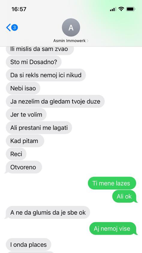 U narednim prepiskama jasno se vidi da je Asmin Aneli govorio da će ona biti njegova žena celog života, kao i da je voli, kao i da je zbog te ljubavi spreman na sve, pa čak i da ubije zbog nje, što jasno govori o intenzitetu njegovih emocija prema Aneli!