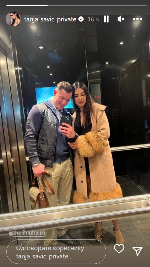 Tanja je objavila njihovu zajedničku fotografiju iz lifta, na kojoj ih vidimo kako poziraju nasmejani, a primetno je i da Savićeva blista pored partnera.