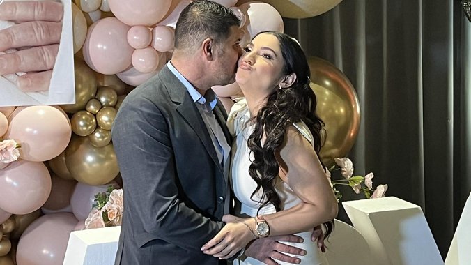 Ponosna mama je zablistala u beloj haljini pripijenoj uz telo, on je bio u odelu, a oboje osmeh sa lica nisu skidali.