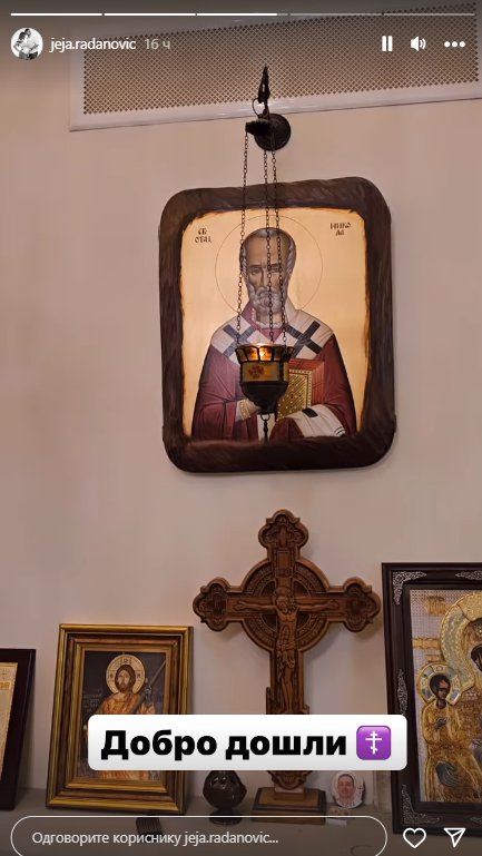 Sloba je objavio na gorepomenutoj društvenoj mreži fotografiju ikone Svetog Nikole, te se na njoj vidi i kandilo.