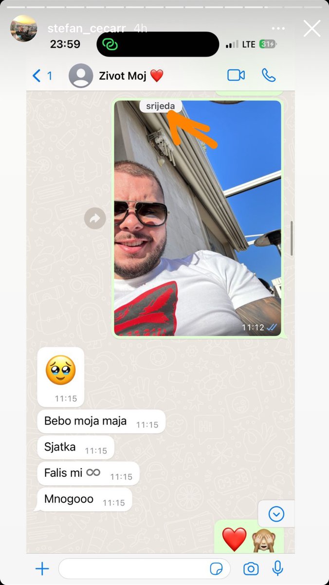 Stefan je objavio i prepisku od prošle srede, kako se može videti na skrinšotu, gde je fotografisao sebe i poslao, pretpostavlja se, Aleksandri, a ona je na to odgovorila: