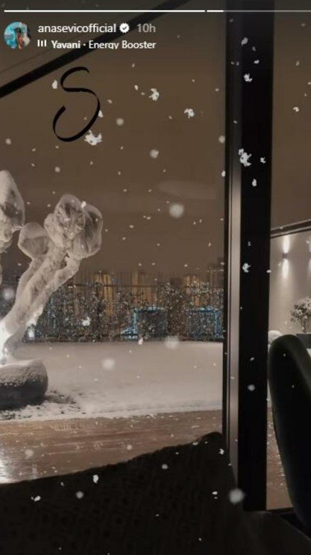 Ana je snimala terasu penthausa koja se cela zabelila od snega koji je napadao.