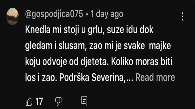 Vrhovni sud ukinuo je odluku Županijskog suda o zajedničkom starateljstvu Severine Vučković i Milana Popovića nad sinom Aleksandrom, te je starateljstvo nad dečakom dodeljeno ocu. Severina Vučković je pre nekoliko dana imala veliki koncert na Jahorini, a u jednom trenutku je pokazala srednji prst.