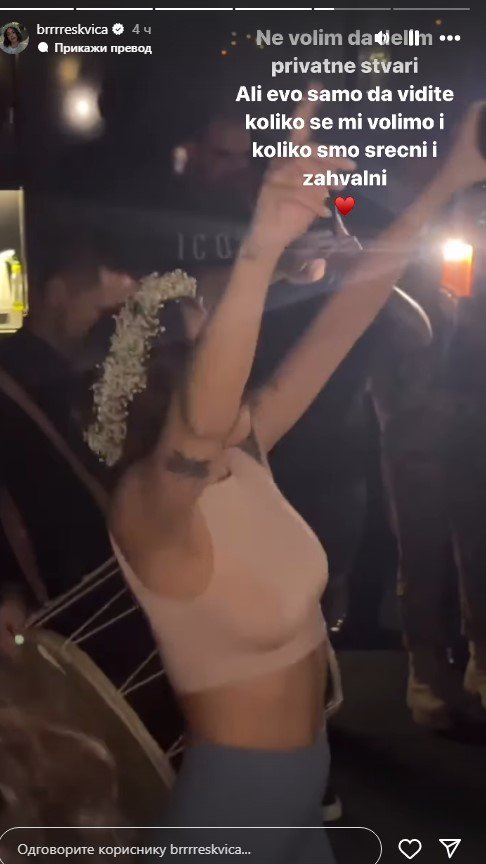 - Ne volim da delim privatne stvari, ali evo samo da vidite koliko se mi volimo i koliko smo srećni i zahvalni - napisala je ona uz video mlada pevačica.