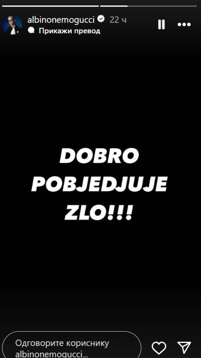 Pevač Albino oglasio se na Instagramu i podržao srpsku predstavnicu za Pesmu za Evroviziju Teyu Doru, pa potom izazvao buru na društvenim mrežama objavom.
