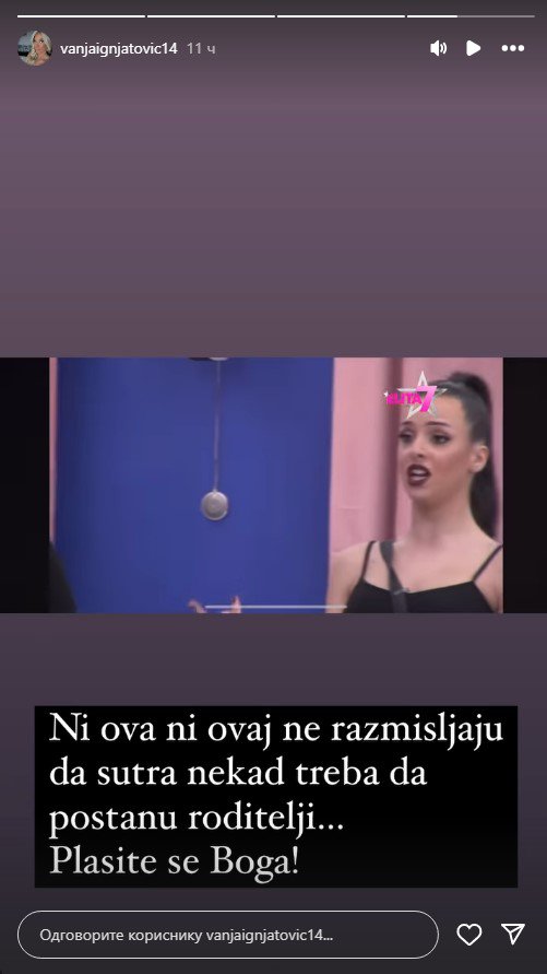 Ni ova, ni ovaj ne razmišljaju da sutra nekad treba da postanu roditelji... Plašite se Boga - poručila je Vanja.