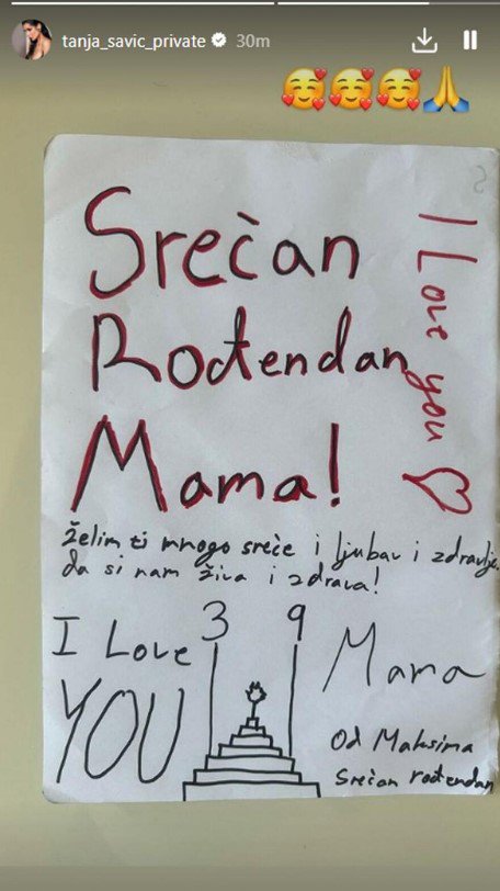 Srećan rođendan, mama. Želim ti mnogo sreće i ljubav i da si nam živa i zdrava! Volim te, mama. Od Maksima srećan rođendan - napisao joj je naslednik.