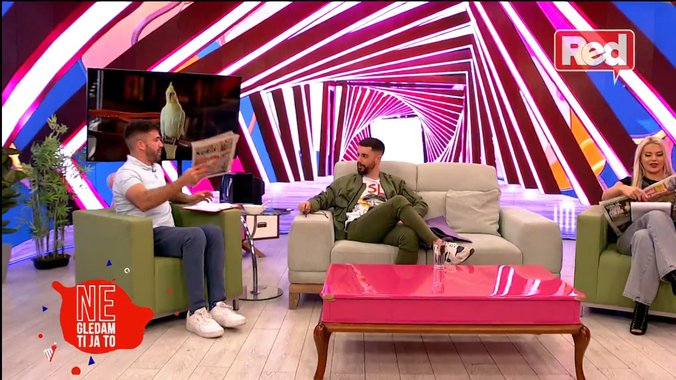 Panda je pred kraj emisije došao u studio jutarnjeg programa RED TVa da se pozdravi sa svojim kolegama, a Sanju je zanimalo da li im supruge remete vezu.