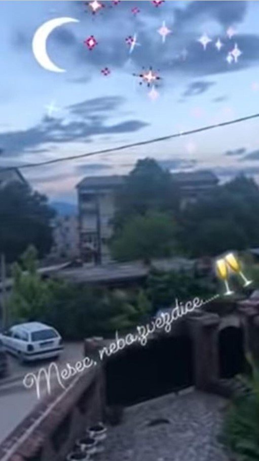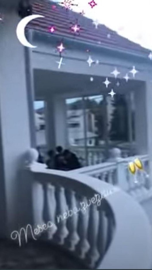 Na kadrovima ogromnog balkona pevačica je napisala deo svoje pesme "Mesec, nebo, zvezdice...".