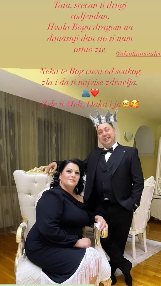 Tata, srećan ti drugi rođendan. Hvala Bogu dragom da si nam na današnji dan ostao živ. Neka te Bog čuva od svakog zla i da ti najviše zdravlja. Žele ti Meli, Daka i ja -poručila je Nadica.