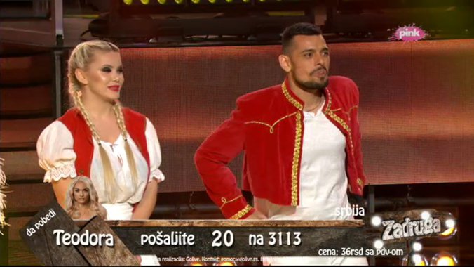 Sanja Stanković i Bora Santana pripremili su numeru "Balkan" koju je pre nekoliko godina otpevao pevač i član žirija najgledanijeg muzičkog takmičenja "Pinkove zvezdice", Milan Stanković. Kao i njihovi cimeri iz Zadruge, i ovo dvoje takmičara imalo su prigodne kostime i koreografiju specijalno za ovaj nastup.