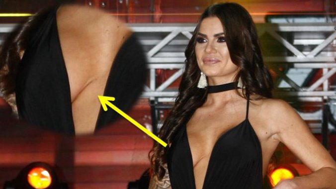 U haljini s ogromni izrezom skoro do pupka njene gole grudi bile su "na izvol'te", a budući da nije nosila brushalter objektiv našeg paparaca uspeo je da zabeleži i vidljive ožiljke, koji su posledica ove estetske intervencije.