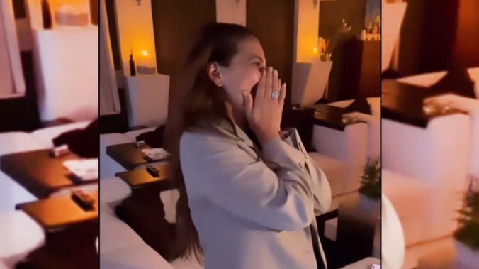 Na snimku koji je objavila na Instagramu vidi se njen ulazak u stan, nakon kojeg postaje očigledno da je spremljena atmosfera za još jedno proslavljanje, da bi ubrzo potom njeni najbliži započeli rođendansku pesmu. Slavljenica očigledno nije ovo očekivala, što se moglo videti i prema reakciji koju je imala prema svom suprugu koji je sve usnimio.