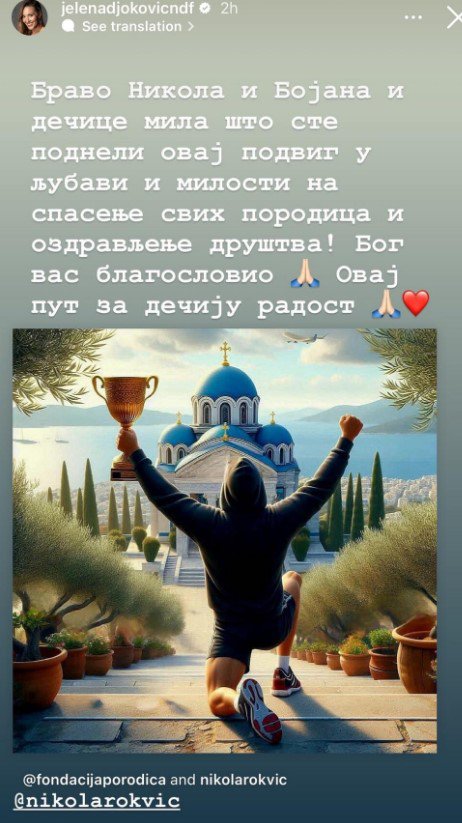 Bravo Nikola i Bojana i dečice mila što ste podneli ovaj podvig u ljubavi i milosti na spasenje svih porodica i ozdravljenje društva. Bog vas blagoslovio. Ovaj put za dečiju radost - napisala je supruga najboljeg tenisera na svetu Novaka Đokovića.