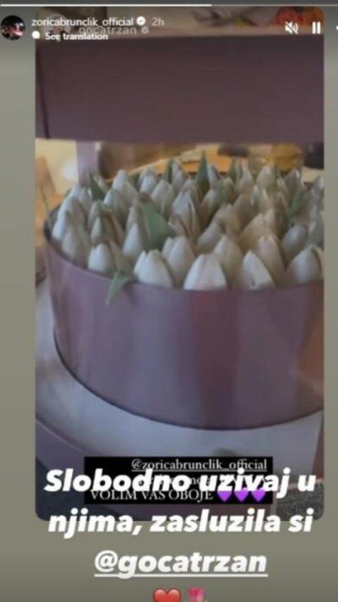 Oni znaju da su lale moje omiljeno cveće, ali ove su čokoladne, ne bih smela ni da ih pipnem ako želim da ostanem mršava - rekla je Goca i oduševljeno pokazala poklon koji su joj poslali Zorica i Kemiš.