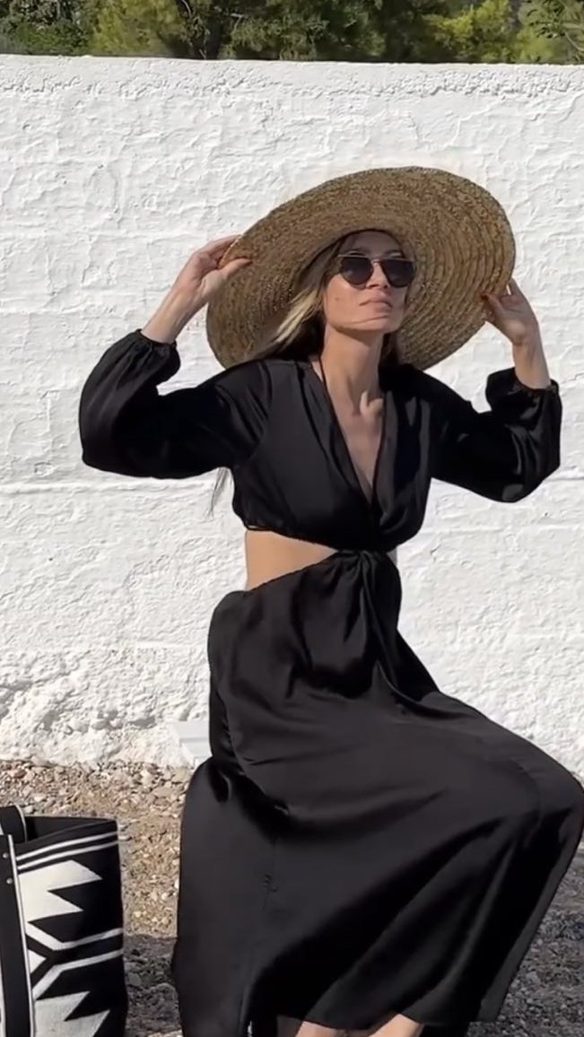 Na jednoj od poslednjih objava, Jelena je pokazala savršenu letnju modnu kombinaciju za plažu. Iako je crne boje, dugačka haljina neobičnog kroja joj savršeno stoji, a sve to je ukomponovala sa velikim slamatim šeširom i crno-belom ceger torbom.