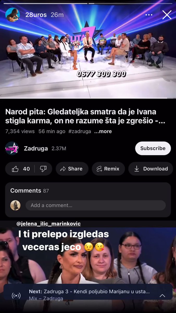 Tokom emisije, kao što je voditelj Milan Milošević otkrio, Uroš Rajačić je okačio stori na kojem se obratio Jeleni: