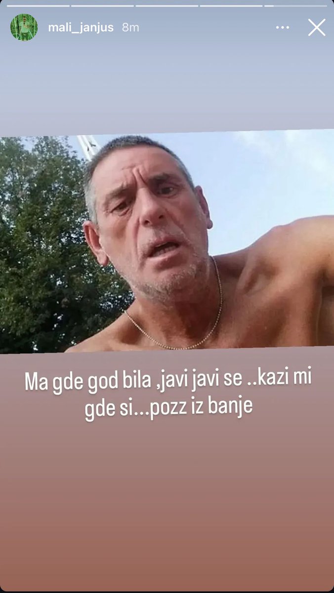 - Ma gde god bila, javi javi se...Kaži mi gde si...Pozz iz banje - napisao je Janjuš na svom instagram profilu uz Mićinu fotografiju.
