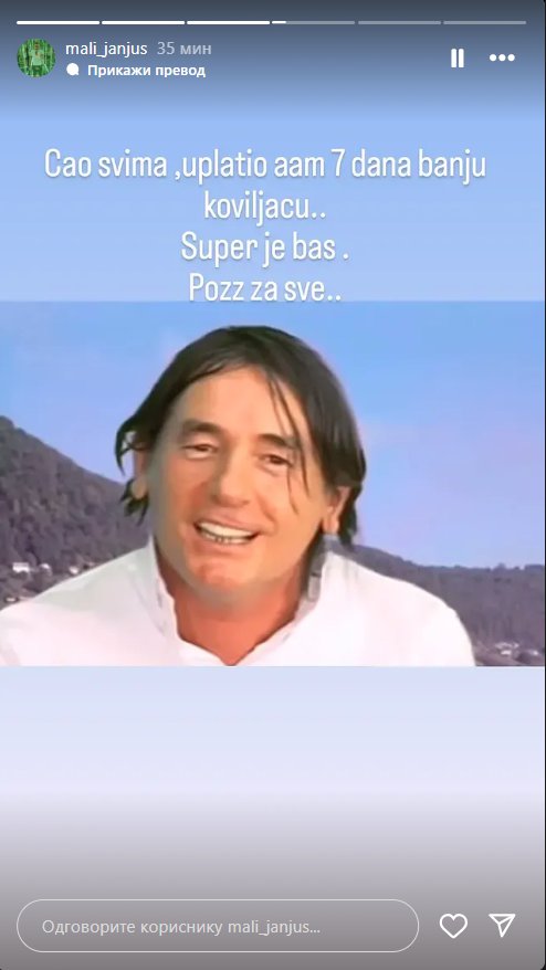 - Ćao svima, uplatio sam sedam dana banju koviljaču. Super je baš. Pozz za sve - napisao je Janjuš.