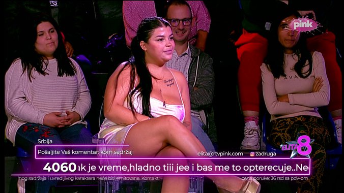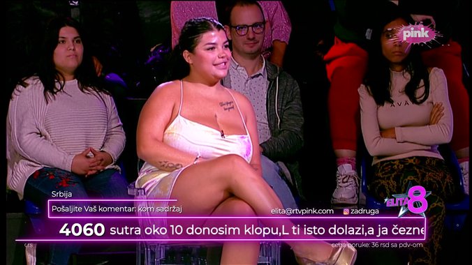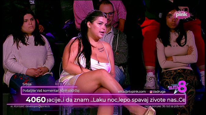 Najmanji broj glasova publike dobila je Monika Stanojkova, koja se nakon ispadanja pridružila voditeljki Dušici Jakovljević u studiju.