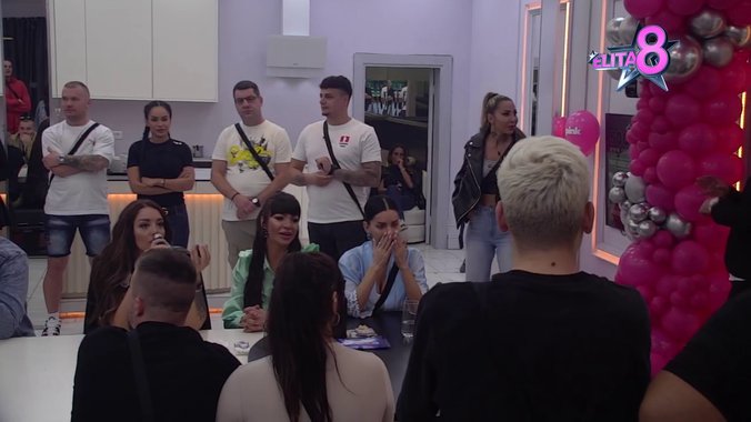 - Prvo neka ustanu Aca Kockar, Keti kuvarica, Kristina Kiki takođe. To je prva trojka, Aca i Keti su se nešto muvali pa da provreimo da li ima nešto između toga. Pored toga Munjez i Mrvica, takođe Ana Spasojević. Neka ustane Ivana Keneški takođe. Pored njih Ivan i Jelena takođe neka ustanu, između njih ništa nije rešeno, ona je opet nasrnula na njega tako da će biti pakleno. Pored toga Uroš Rajačić, zatim Kadrić i Sofija, Škatarić i Slađa. Pored toga Uroš i Đole da bude malo zanimljivo, pali su tu neki poljupci. Zatim Mateja i Aneli isto postoji priča, kao i Anđela i Gastoz -rekao je Terza, pa dodao: