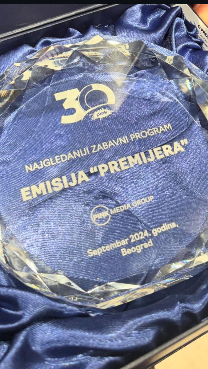 - Posle skoro deceniju i po koliko sam na našoj televiziji ovo je za mene najveći poslovni uspeh. Jako sam ponosan i privilegovan što sam deo ove televizije, a zatim i što sam najmlađi dobitinik nagrade koja mi je dodeljena u ponedeljak na svečanoj ceremoniji. Iza ovoga stoji timski uspeh, veliki trud, zalaganje i velika želja da naša "Premijera" bude lider u zabavnim emisijama u čemu smo uspeli. Bez dobrog tima nema ni dobrih rezultata, a ovo je kruna svega što radimo. Statistike kažu da je poslednjih nekoliko sezona oborilo sve rekorde glednosti. Za ovih deset godina proizveli smo više od 200.000 minuta programa, ni sam ne znam koliko hiljada kilometara smo prešli i koliko je stotina kako domaćih tako i stranih ličnosti govorilo za nas.Samo u prethodnoj sezoni emitovali 50 premijernih specijala i 260 dnevnih emisija. Što u prevodu znači da smo samo za godinu dana proizveli oko 19.000 premijernih minuta . Ovaj orden je kako meni , tako i mojim kolegama motiv više da nastavimo što bolje i da sezona u koju smo ušli pre četiri nedelje bude još bolja. Prva četiri specijala u ovoj sezoni ubedljivo su najgledaniji do sada. Svaki od njih pratilio je u proseku 1. 200 000 gledalaca, a na sve to dodajte i to da smo mi najduža zabavna emisija u istoriji televizije, još od 1920 godine kada je zvanično i registrovana.