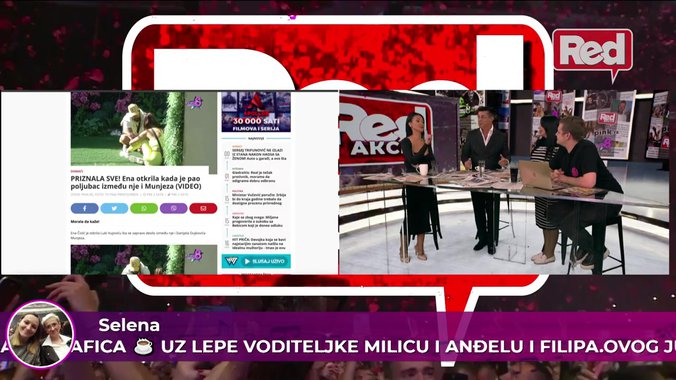 U današnjem izdanju emisije REDakcija voditelji Sanja Arsić i Nikola Žugić ugostili su voditelja, oca učesnika Elite Jovana Pejića Peje, Zorana Pejića Peju i astronumerologa Ružicu Kralj. Tom prilikom, Peja je istakao kako sada gleda na Enu Čolić i njen poljubac sa Munjezom, a otkrio je i da li postoji šansa da joj Jovan to oprosti.