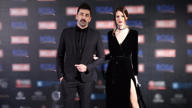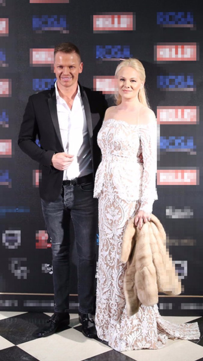 Voditelj televizije Pink, Ognjen Amidžić došao je na proslavu u društvu supruge Danijele Dimitrovske. Njih dvoje bili su u crnim odevnim kombinacijama, a manekenka je posebnu pažnju privukla haljinom koja je isticala njene vitke noge.