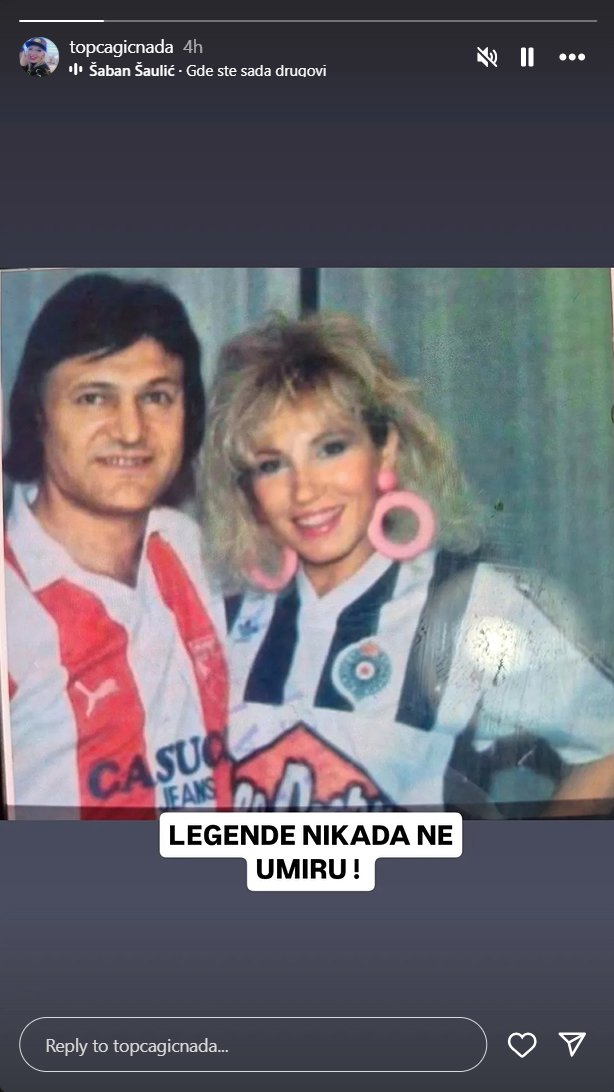 Sada je u javnost isplivala stara fotografija Šabana i njegove koleginice, Nade Topčagić. Naime, njih dvoje su pozirali u fudbalskim dresovima, dok je Šaban bio u dresu "Crvene zvezde", dok je Nada na sebi imala dres "Partizana".