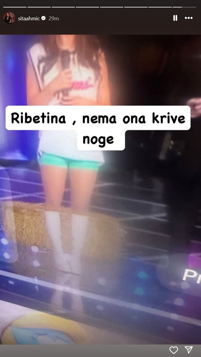 - Ribetina, nema ona krive noge - ironično je napisala Sita.