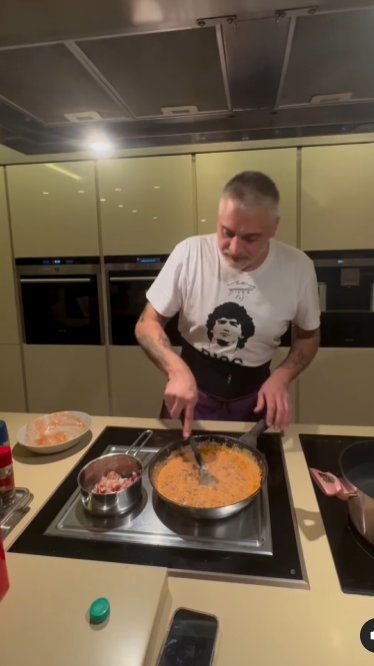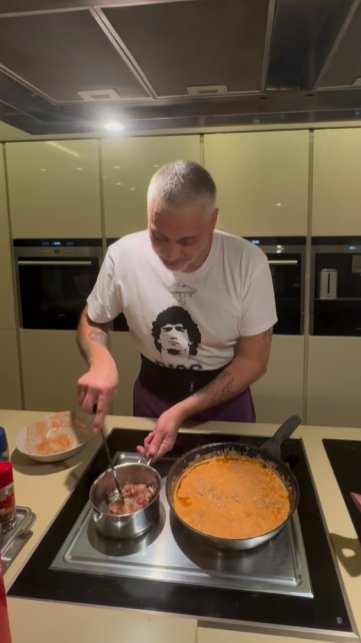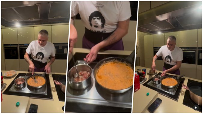 U opisu snimka, Jovanović je napisao "Sveta familija", ali nije otkrio za koga priprema večeru.