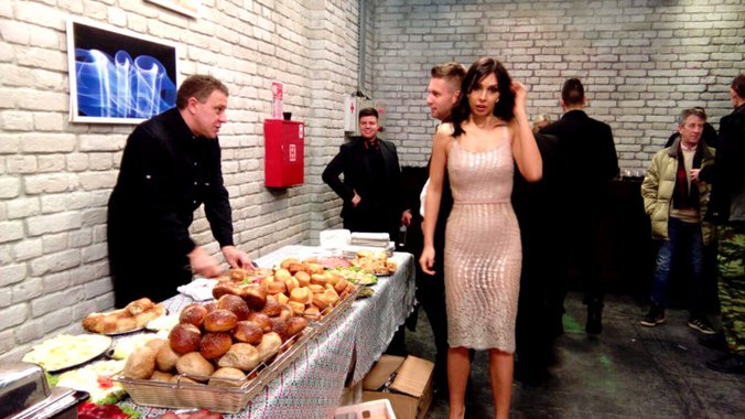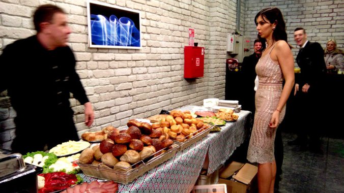 Ipak, iako je na strogom režimu ishrane, Gabrijela je naglo ogladnela, pa je u pauzi od snimanja došla do stola sa hranom i poslužila se salatom i projom.