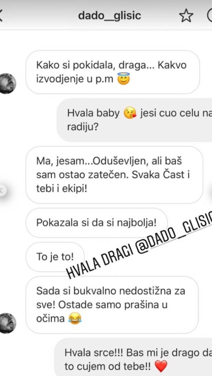 Kako si pokidala, draga... Kakvo izvođenje - napisao je Glišić, a kada ga je Kaja upitala da li je poslušao celo izveđenje, usledila je salva komplimenata na Kajin račun.