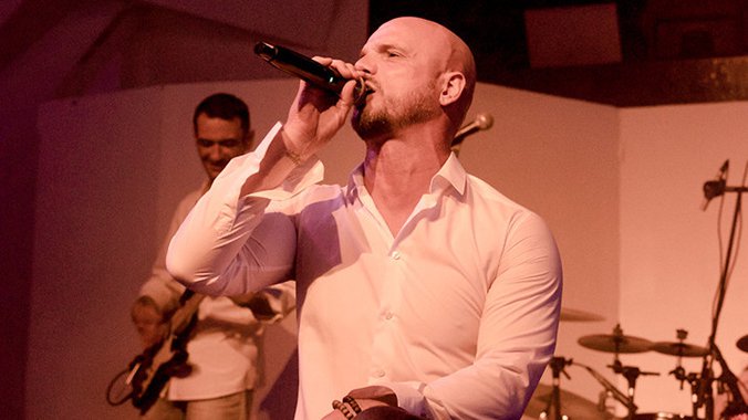 Naravno, nismo mogli a da ne iskoristimo priliku da ga ispitamo neke stvari, pa ga je tako novinarka portala Pink.rs, Milica Krasić, upitala da li je istina da je na jednom svadbenom veselju pevao samo svoju pesmu "Usne boje vina" cele večeri: