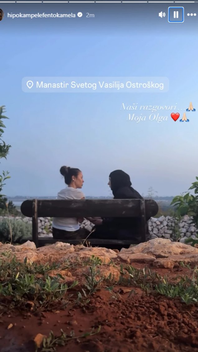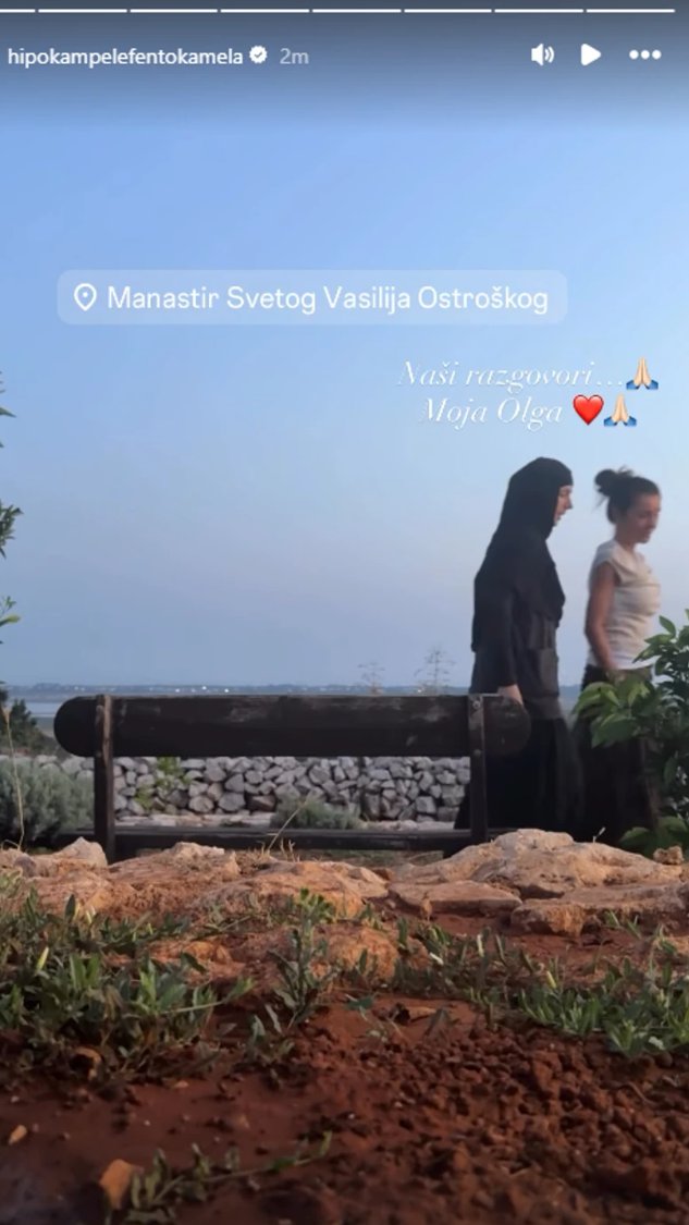 Naime, Dragana je sada na svom storiju na Instagramu objavila video iz manastira Svetog Vasilija Ostroškog, a pokazala je kako sedi na klupi sa monahinjom kojoj se verovatno ispovedala i vodila dubokoumne razgovore.