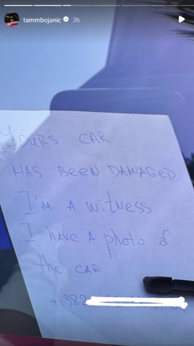Na svom Instagram profilu Tamara je podelila fotografiju izgrebanog automobila, uz jasnu poruku besa i razočaranja: