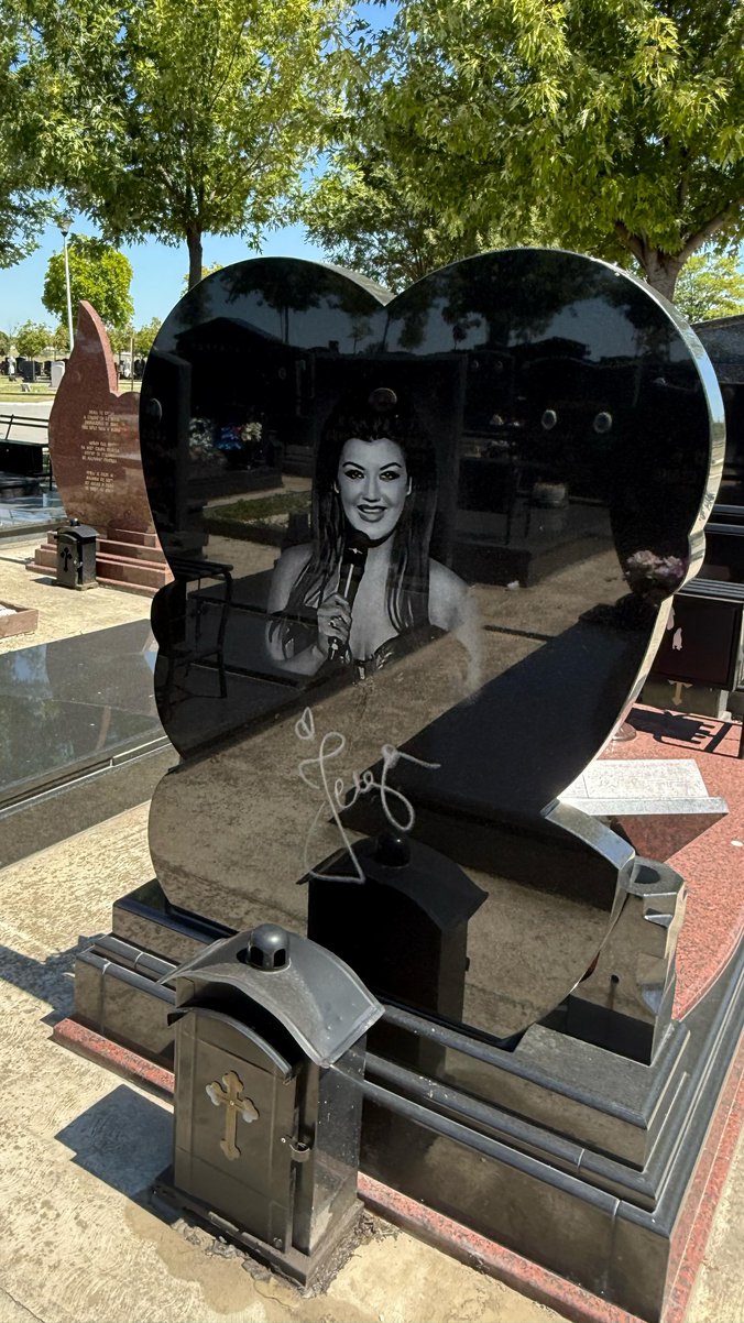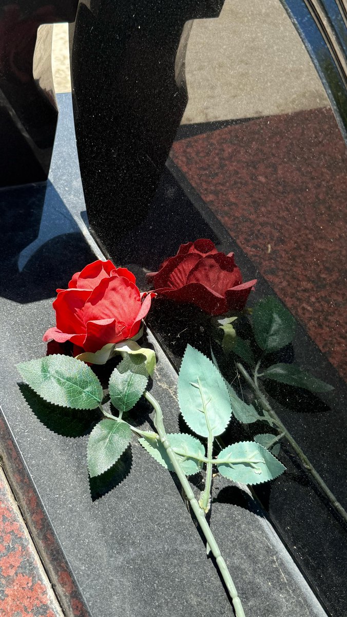 U vazni za cveće stoje dve crvene ruže, a jedna ruža je odvojena i položena na grob pevačice, tik uz spomenik.