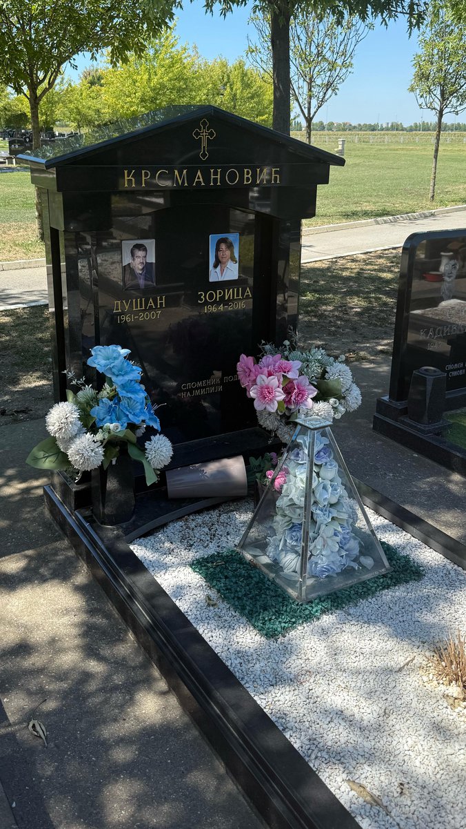 Dok sa druge strane, grob Jeleninih, roditelja. Dušana i Zorice Krsmanović, kao i Jelenin redovono obilazi njihova porodica.