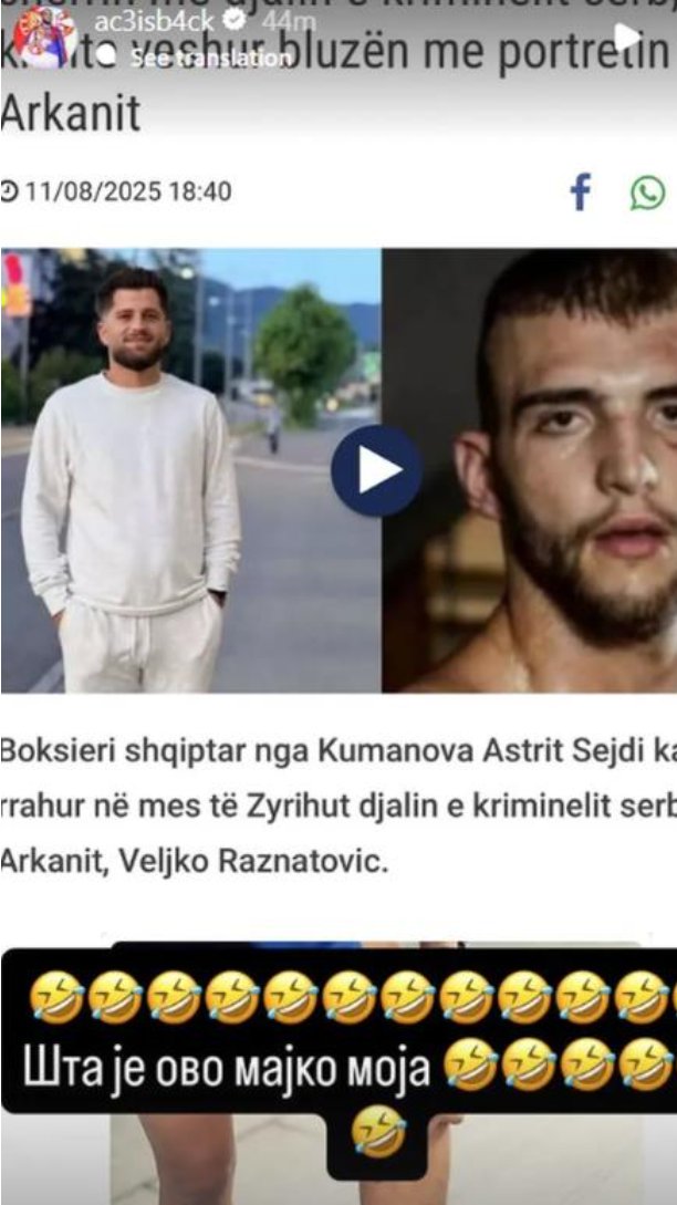 Na fotografiji su njihove slike sa podnaslovom u tekstu gde se navodi kako je Veljko, najverovatnije u meču navodno pretučen od izvesnog Astrita Sejdija.
