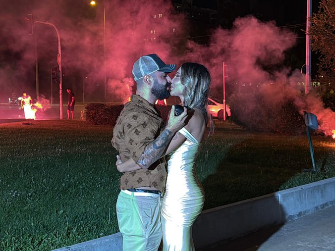 Vujović je izveo uz pomoć majke i prijatelja Aneli iz lokala, te joj je priredio spektakularni vatromet, te je zasijalo nebo na Novom Beogradu, nakon čega je prišao svojoj devojci, kleknuo ispred nje i pred svima je upitao da ostatak života provede sa njim, na šta je ona odmah pristala. Kako je sve ovo bajkovito i magično izgledalo, pogledajte u nastavku: