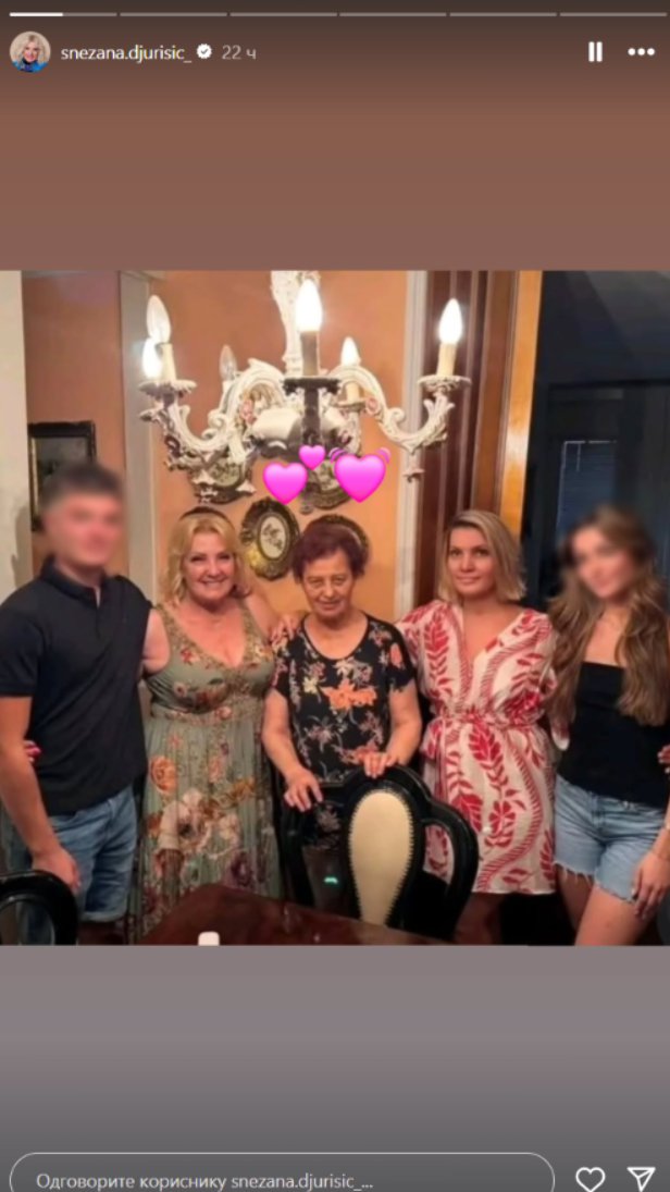 Snežana Đurišić ne voli da svoju porodicu ističe u javnosti, međutim sada je napravila presedan. Pevačica je objavila sliku sa svojim najmilijima, a osim njene ćerke svi su primetili i lepotu njene unuke,