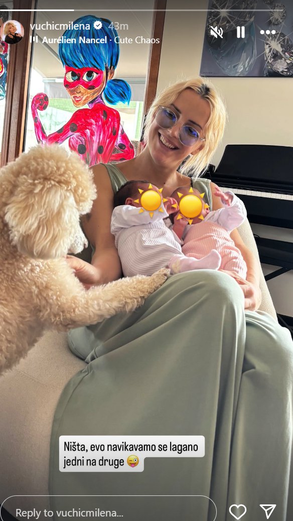 Milena je sa bliznakinjama napustila porodilište, a sada je objavila fotografiju iz porodičnog doma. Ona je sedela sa bebama u rukama, dok je pored bio kućni ljubimac.