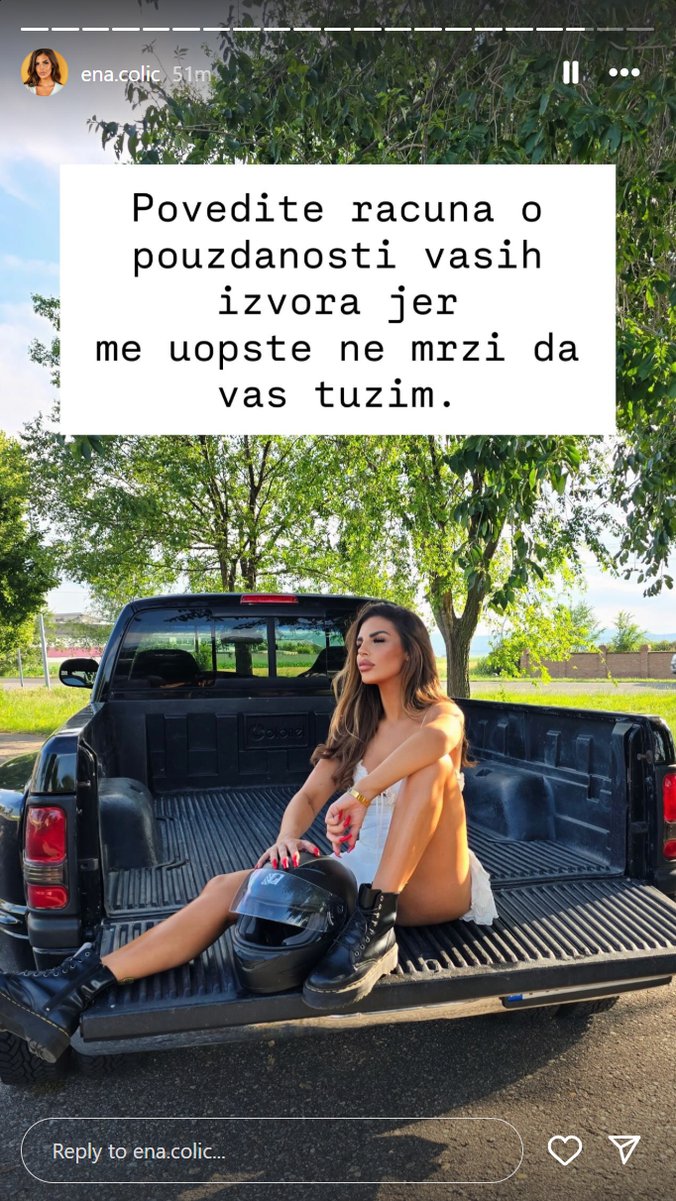 - Povedite raćuna o pouzdanosti vaših izvora, jer me uopšte ne mrzi da vas tužim - poručila je Ena.