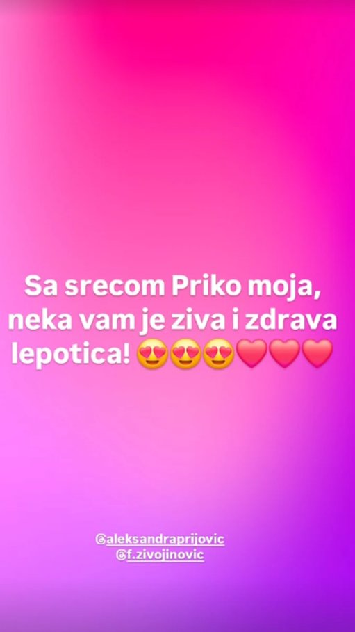 - Sa srećom Priko moja, neka vam je živa i zdrava lepotica - napisala je Milica.
