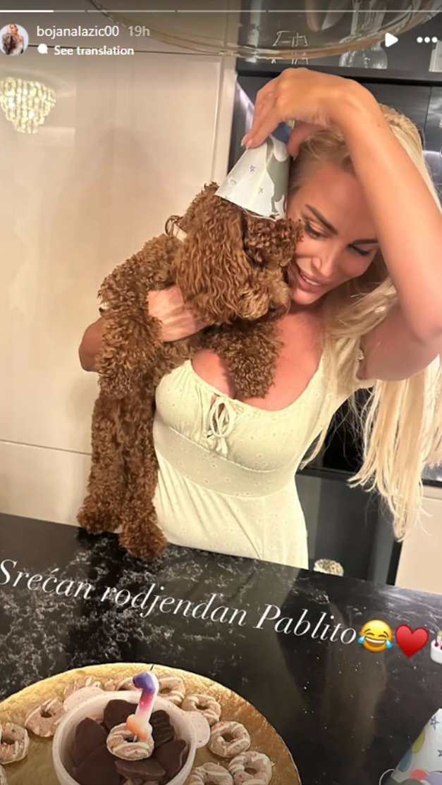 Bojana Lazić, fatalna voditeljka emisije "Premijera vikend specijal", proslavila je prvi rođendan svom psu Pablu.