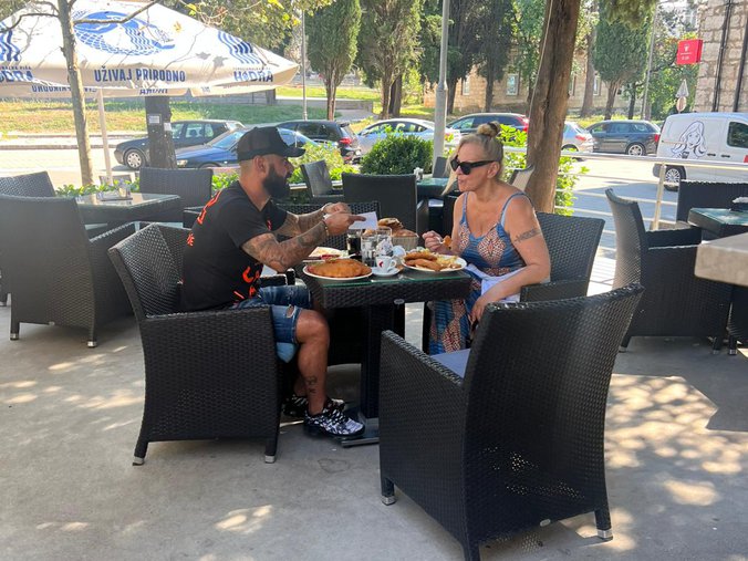 Vujović je najpre boravio u Sarajevu, a potom opet kod njih u Dubrovniku, a sada se sa taštom Jasminom Ahmić Groficom uputio u Bileću, gde ih je u jednom restoranu fotografisao čitalac, koji nam je dostavio fotografije.