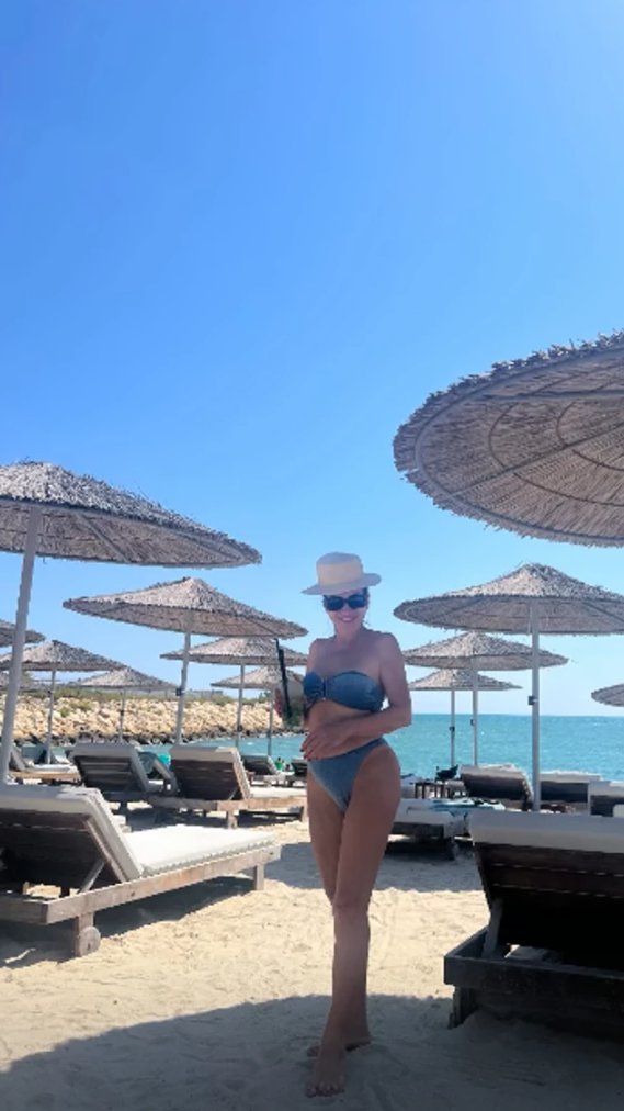 Njih dve su se na plaži opuštale uz aperol špric, a pevačica je kosu podigla u neobaveznu punđu dok na licu nije imala trunku šminke.Ona je potom pozirala u plavom bikiniju i pokazala da iako je zakoračila u sedmu deceniju uspeva da održi vitku figuru.
