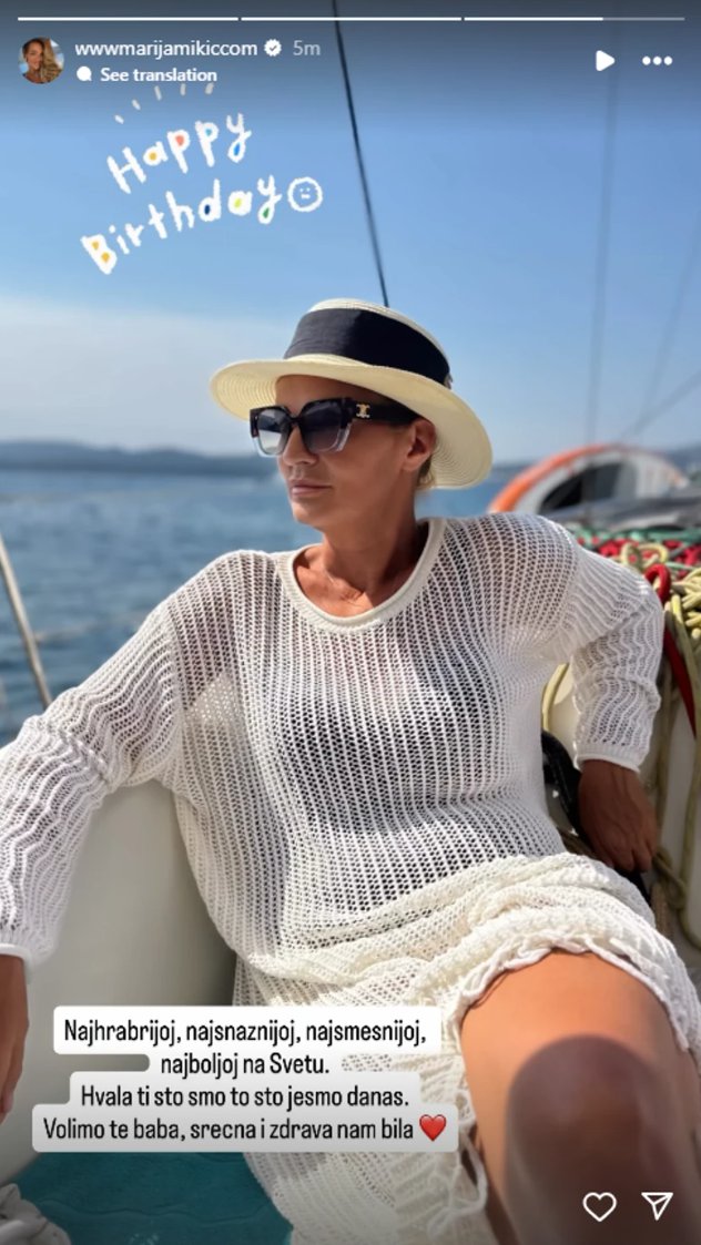 Marija Mikić objavila je fotografiju majke dok je pozirala na brodu, a onda stavila emotikon "Srećan rođendan".