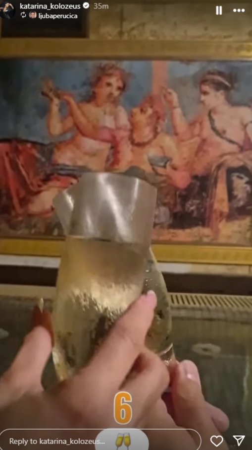 Na snimcima i fotkama koje su osvanule na Instagramu, vidi se kako Ljuba i Katarina bez ustezanja razmenjuju nežnosti – ljube se, grle, nazdravljaju i smeju.