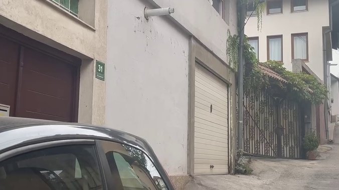 Mi smo sada usnimili kadrove Dinove vile u Sarajevu, a u prvom planu je velika, upadljiva kapija.